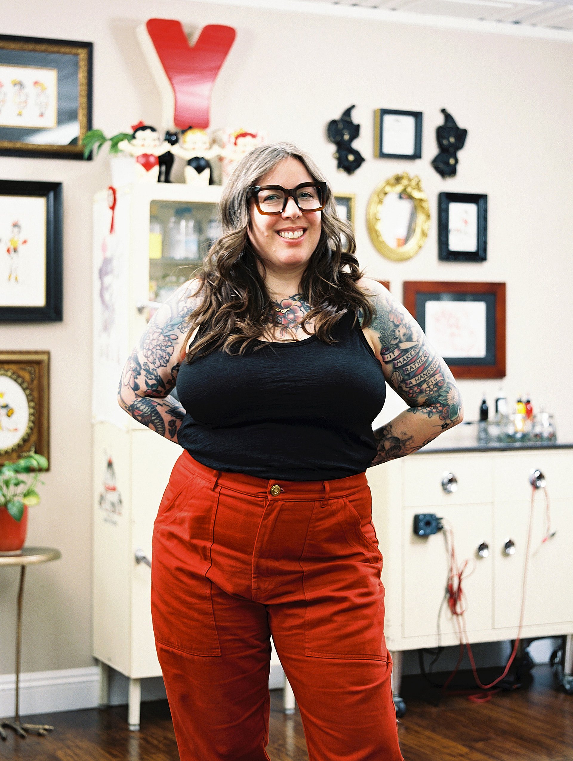 Hello! I’m Show Pigeon (you can call me Evie). I own and operate Show Pigeon Tattoo in Orange County, CA, where I tattoo, paint, and provide creative consultations. I also love collaborating with artists and companies and working with non-profits. My most significant artist collaboration to date is Pigeon the Kewp Doll, and my most notable contribution to a non-profit was the work I did with We Testify.